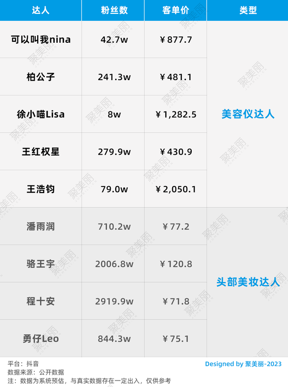 从上表可以清楚的看出,这批美容仪达人的直播客单价高于大部分主流的彩妆or护肤带货达人。