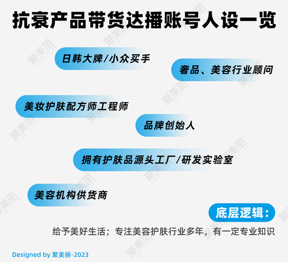 纵观国产黑绷带及美容仪一众直播带货众账号,稍作总结,可以发现他们基本围绕着以下6种类型的人设展开。