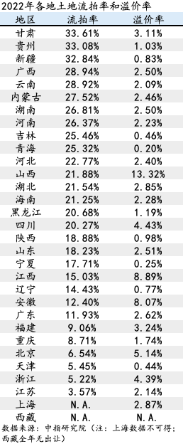土地出让收入缩水幅度较大的还有天津、甘肃、重庆、青海和贵州等5省,降幅均高于50%。分析人士指出,除了受到宏观大环境的影响,天津和重庆两地还和此前若干年成交透支有关。从流拍率来看,2022年天津和重庆的流拍率分别仅为5.5%、8.7%,但2022年,天津土地成交宗数、土地成交建筑面积、土地出让金,均创15年新低。