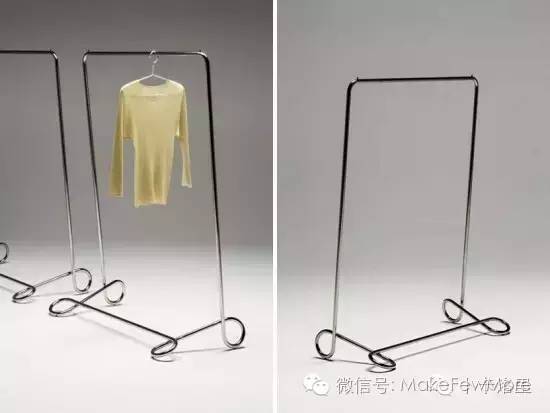 藤原敬介还为三宅一生副线品牌“pleats please issey miyake”店铺专门设计了金属衣架,让人联想到传统的“九连环”或“益智套环”。选用19mm的不锈钢管一体成型,自由扭曲的形状看似倾斜,但底部的结构起到支撑作用,使衣架牢牢得站稳。
