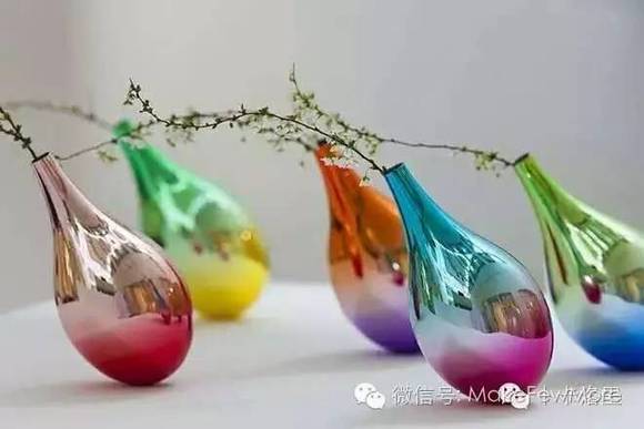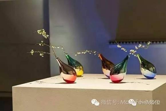 水滴形状的花器,由钢材制作而成,表层镜面的渐变色设计足够吸引眼球。但这套花器的特点远不止于此,由于地心引力的作用,不受外力作用下的花瓶可以稳稳得直立,一旦插上花枝,便会随着花枝延伸方向自然倾斜,随着花瓣的凋零,甚至会有小幅度的摇摆。