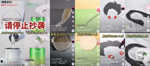 但近日,毕生之研却发现这条创意视频被Murad进行了“1:1复刻”。随后,毕生之研更是发现品牌曾经发布的视频被Murad多次抄袭。“被抄袭的数量远超我们想象”毕生之研写道。