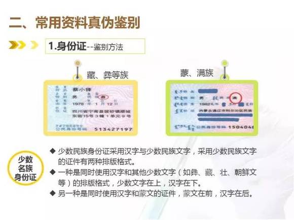 u 少数民族身份证采用汉字与少数民族文字,采用少数民族文章的证件有两种排版格式