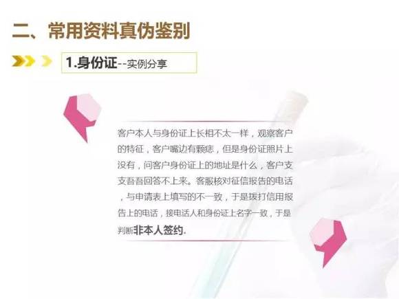 辨别客户提交的资料需要特别细心的观察,与耐心的检查,这就需要信贷员在工作中慢慢积累经验,学会对“望、闻、问、切”。