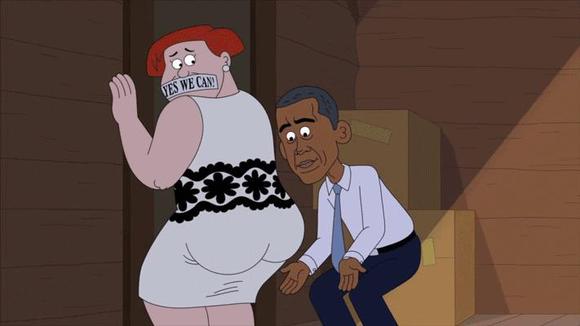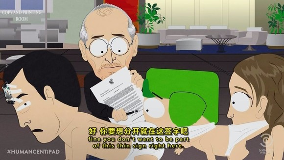 除了脏话,动画中的人物可以说是毫无顾忌,什么都敢喷,无论是世界政要、商界大佬还是国际巨星,都逃不脱《南方公园》的“魔掌”,似乎分分钟都会刷新底线。