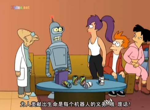 《飞出个未来》以各种方式对经典的美国式科幻进行反转和调侃,经典科幻的永恒主题“人类与外星文明之间的保卫地球或者征服新星球的战争”已不再是主要问题,取而代之的是当代人时时都在面对的各种生活问题问题:工作,挣钱,网络,犯罪,毒品...
