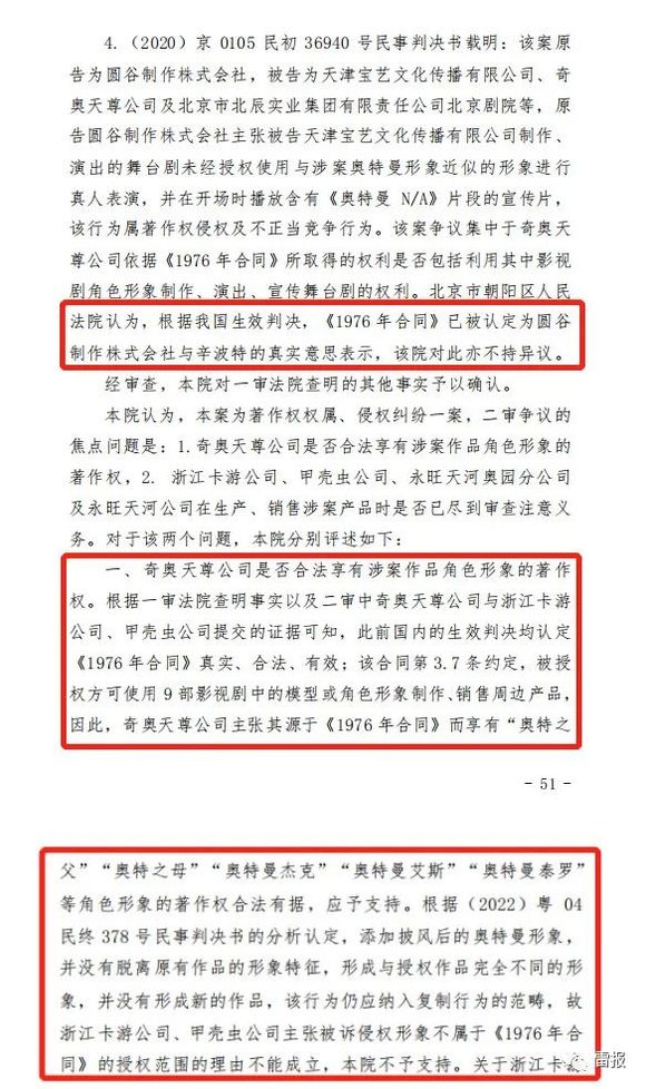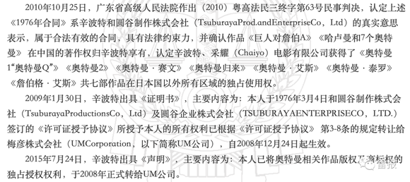 至于版权从何而来,根据奇奥天尊公开发布的判决书、声明,其提到《1976年合同》这一关键点,正是因为国内的生效判决均认定《1976年合同》真实、合法、有效,“奇奥天尊公司为经典奥特曼系列在中国唯一的合法权利人”这一重要事实才真正成立。