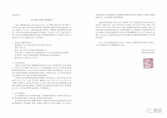 2019年,圆谷关于此起事件的相关告知