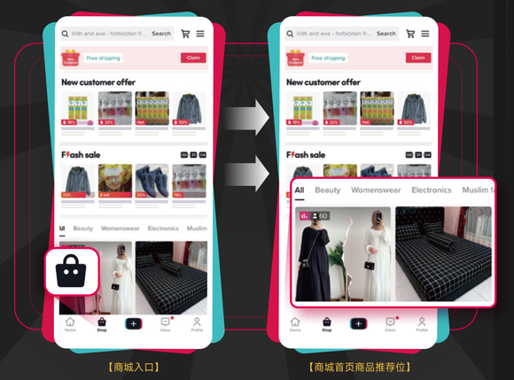 同理,TikTok短视频、直播能够激发用户的潜在兴趣,用户被深度种草之后,再在TikTok Shop(类似于抖音小店的店铺橱窗展示和订单支付)达成成交,这是“货找人”的链路。而TikTok Shop商城的出现,则打通了“人找货”的链路。
