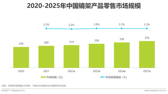 镜架行业保持平稳上升态势,2021年市场规模达309亿