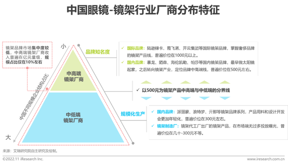 镜架品牌市场集中度低,国货品牌逐渐在中高端产品线崛起