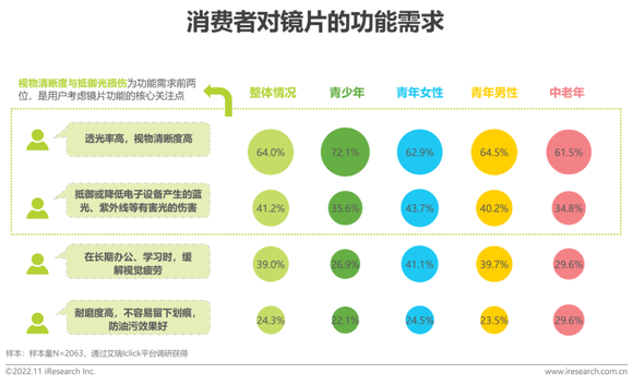 青年群体对抵御光线、青少年对视物及眼保护诉求更加突出