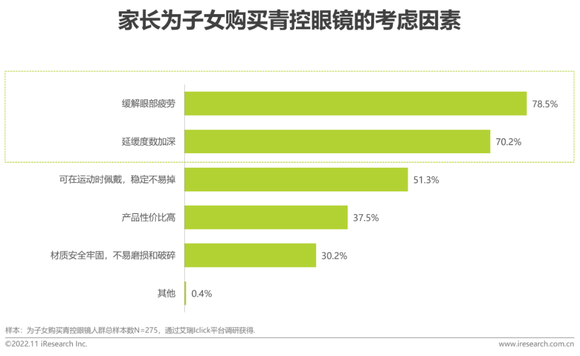 家长为子女购买眼镜时,最关注护眼抗疲劳与近视延缓功能