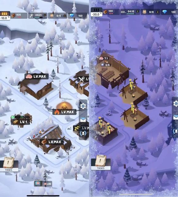 《Frozen City》的玩法主要体现在:放置+建造(模拟经营)+RPG卡牌融合玩法。(有人说是融合,有人说是缝合)