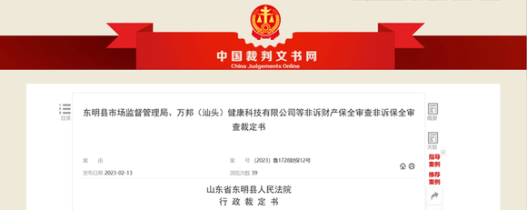 近日,聚美丽发现《中国裁判文书网》在2月13日披露了一则有关万邦(汕头)健康科技有限公司(以下简称“万邦科技”)资金被冻结的案件信息。