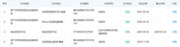 另外,企查查显示,万邦科技的资质证书页面则还有三项近年来申请的关于百诺恩品牌产品的备案信息。总的来看,万邦科技、百诺恩与可靠护理、可艾个护间有着盘根错节的联系。