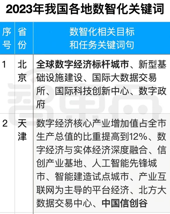 各地具体如何将数字技术与当地产业、治理和人居生活结合起来,开展新一年的政府工作?智东西将以下30个省市自治区的《2023政府工作报告》中与数字经济、数字化治理相关的内容整理如下,暂未公布信息的地区未列入其中。