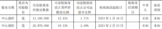 自2021年开始,中山润田就牵涉债务纠纷,之后股票被冻结以及轮候冻结。