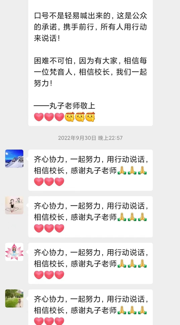 ▲ 去年9月,一位梵音瑜伽的领导在北京教练群内倡议共同努力。图 / 受访者