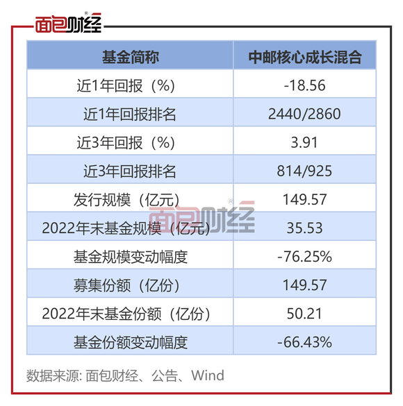 中邮核心成长混合的发行规模约149.57亿元(对应募集份额约149.57亿份)。2022年四季度末,该基金的基金资产净值约为35.53亿元、基金份额总额约为50.21亿份,分别下降约76.25%、66.43%。