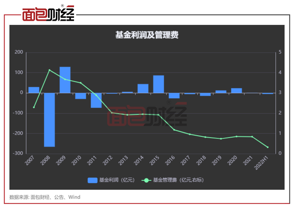 截至2022年末,该基金累计浮亏超过102.48亿元,主要发生在2008年和2011年。