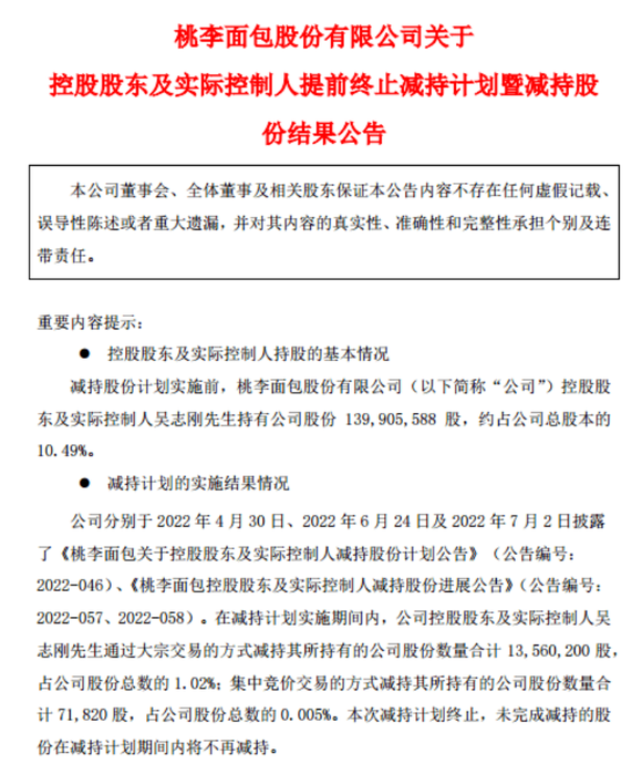 除了官方给出的解释,桃李面包的增收不增利与实际控制人——吴志刚家族频繁套现不无关系。自从2018年公司管理层限售股解禁以来,吴志刚家族便频繁抛出减持计划,合计套现高达4亿多元。
