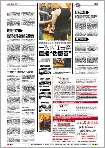 △2016年11月6日,《成都商报》以《一次内讧击穿直播“伪慈善”》为题进行了整版报道