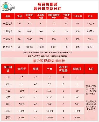 最令人瞠目结舌的,是更有大胆者直接将伪慈善与传销骗局直接挂钩,不仅利用了人们的善心,更将人们的贪欲放到最大。2020年出现的“慈音短视频”平台,就是号称将正能量短视频、公益直播、公益打赏、公益网点、志愿社区等融于一体的全新公益区块链平台。鼓励使用者通过每日刷视频、推广他人加入、实际现金投资等多种渠道赚收入、做慈善。