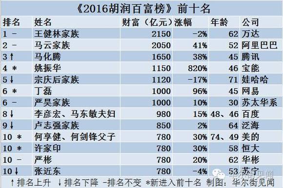10月13日早上,胡润研究院发布2016年度《胡润百富榜》。经见闻君整理,主要看点如下: