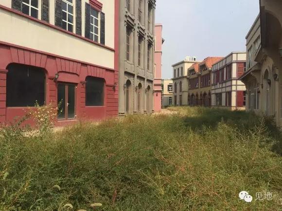 这边是欧亚区的别墅,当时的案名叫做“澜海庄园”。只有一小部分已经建好有人入住,一小部分基本建成,而大部分则是“半成品”,被废弃在一片荒草中,日光照射下显得格外落寞和悲凉。