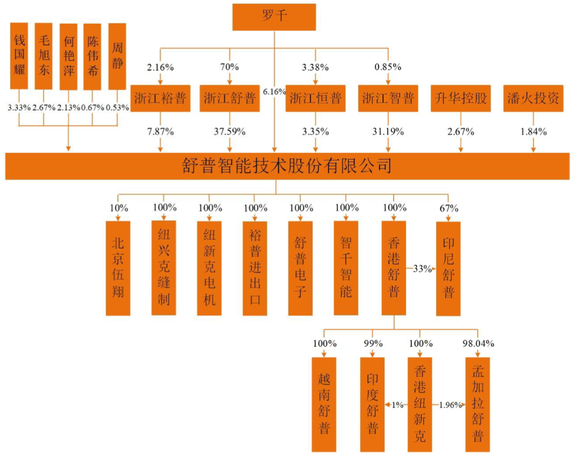 目前,浙江舒普为公司的控股股东,其直接持有公司37.59%的股权,并通过浙江恒普间接持有公司0.20%的股权;罗千为公司实控人,其直接持有公司6.16%的股份,并通过浙江舒普、浙江智普、浙江裕普、浙江恒普间接持有公司27%的股权,合计持股33.16%,合计控制86.16%的投票权。