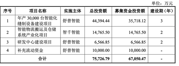 本次IPO,舒普智能拟募集6.71亿元,具体用途如下表: