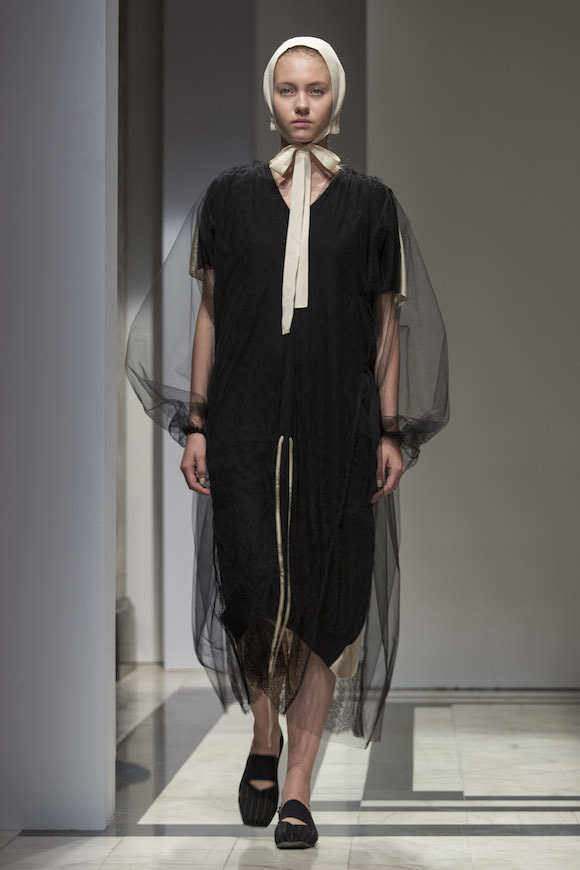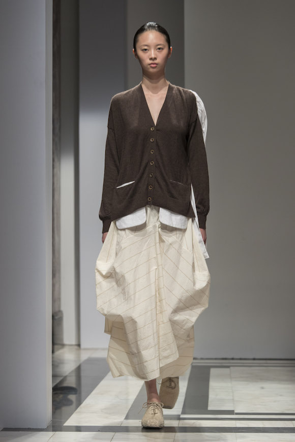 从开秀前半小时中实大楼所处楼口两侧街道已经排起的观众长队看,说这场演示是Labelhood乃至上海时装周至今最受期待的一场秀并不为过。早早就在现场入座的嘉宾有美国知名买手H.Lorenzo、意大利Vogue资深时装编辑Sara Maino、时尚作家及时尚策展人Gemma A. Williams、时装展会Tranoi全球CEO David Hadida等。