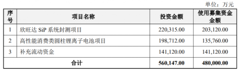 3月8日晚,欣旺达公告,拟向不超过35名特定投资者发行股份,募资总额不超过48亿元,其中约20.31亿元用于欣旺达SiP系统封测项目,约13.58亿元用于高性能消费类圆柱锂离子电池项目,14.11亿元用于补充流动资金。