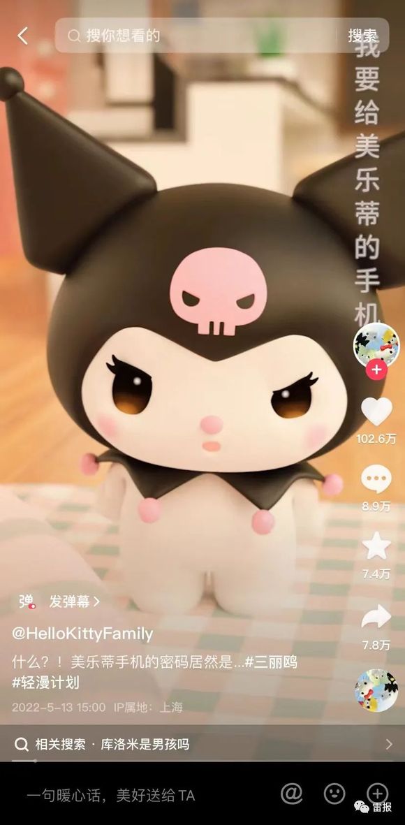视频号:HellokittyFamily,图示为三丽鸥旗下形象Kuromips