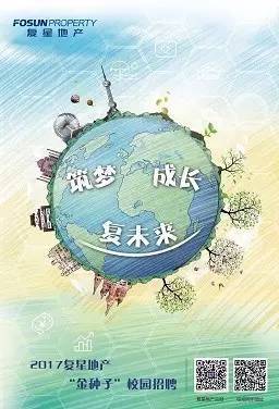 复星地产招聘海报以手绘地球为核心、以蜂巢勾勒背景。地球左边半圆绘有复星海外布局城市的地标建筑,描绘了企业从上海出发不断全球化的“筑梦”之路;右边半圆一颗种子“成长”为参天大树,呼应校招品牌“金种子”,也是对新人茁壮成长的预言和承诺。“蜂巢”代表复星首创的“蜂巢城市”蓝图,寓意复星与年轻人梦想扎根的沃土。