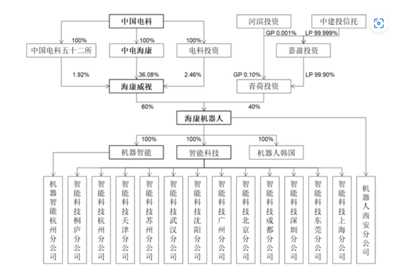 根据海康机器人招股书显示,IPO前,海康威视持有该公司60.00%的股份,青荷投资持股40.00%。