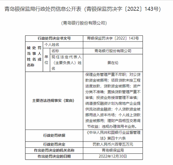 然而,青岛银保监局发布的数张罚单却撕开了这层假象。