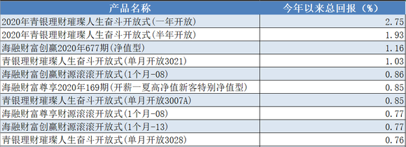 “0破净”神话仍在继续,据WIND数据,截至2023年3月15日,剔除近六月无净值显示产品,青银理财在录的37只产品均未破净。其中,今年以来总回报率最高的产品是2020年青银理财璀璨人生奋斗开放式(一年开放)。