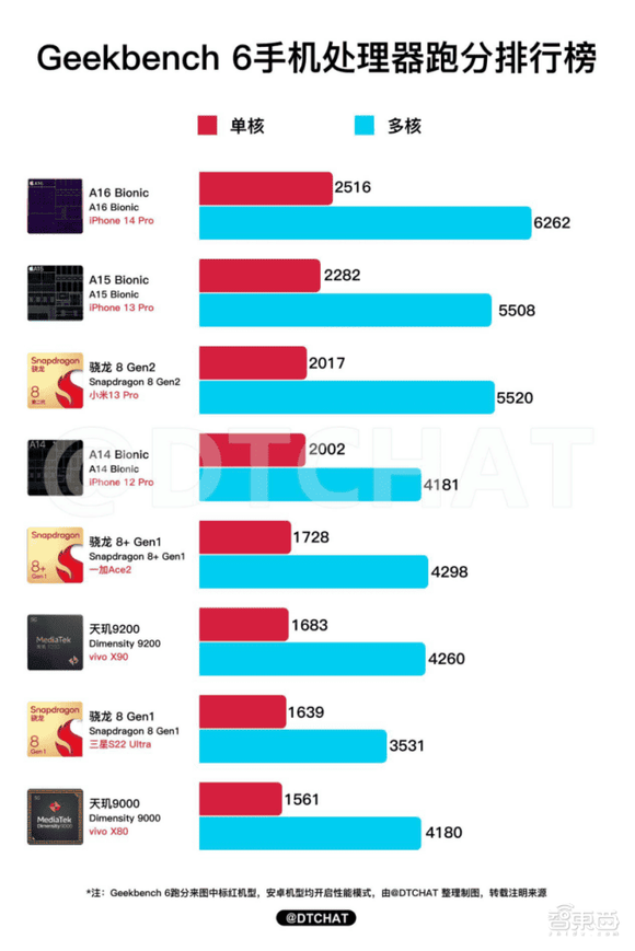 Geekbench 6手机处理器跑分排行榜(图源:GizChina)