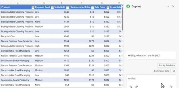 并且,当你要求Copilot从Excel中提取最畅销产品的相关数据进行分析时,另一名同事还能在Copilot同步添加一列。这样一来,大家的想法可以同时呈现在电脑面前,其效果可能与面对面办公类似。