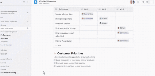 以一个团队在产品报价和定价方面的实时协作为例,可以看到在这个表单中,团队间的成员可以添加注释和相关项目,这样每一个人都可以了解到这一项目的最新进展。