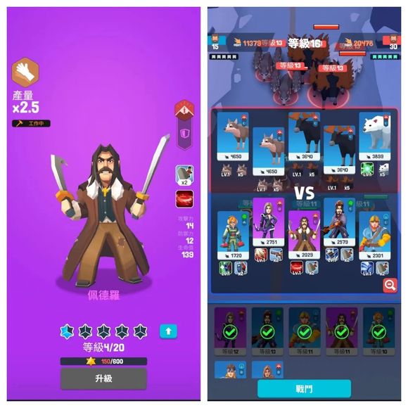 在核心的城建玩法之外,《Frozen City》外围还融合了放置卡牌的玩法。玩家可以通过任务奖励或氪金购买获得英雄,这些英雄一方面作用于对应的资源收集模块,其级别情况可以对资源产出效率产生直接的影响,另一方面还可参与推图探险,通过PVE的卡牌战斗方式,赢得更多资源奖励。