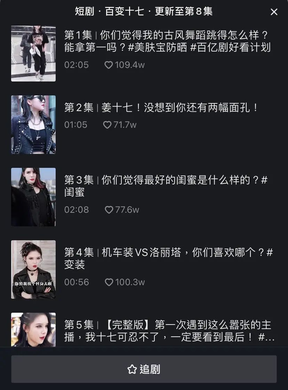 上面这些话题性十足的命题,源自抖音达人“姜十七”于近日上线的微短剧《以成长为装束》。拳打职场霸凌、性骚扰等恶行,脚踢吸血鬼亲戚、为单亲妈妈撑腰,还有经典的霸道总裁爱上我,一部典型的大女主爽剧。目前该剧更新至11集,单集点赞量最高超50万。