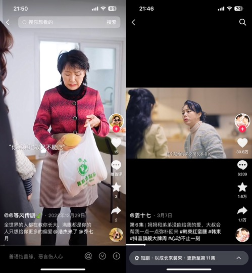 虽然可能尚且握不准短视频平台的脉搏,但影视公司的入局必将推高微短剧在制作上和创作上的天花板。自然的,也将带来MCN机构创作的微短剧的洗牌。比如银色大地的微短剧虽然以男女主、场景串联起了一个看似完整的故事,但整体上仍然倾向于话题先行的片段式呈现,简言之故事完整性和可看性不足。