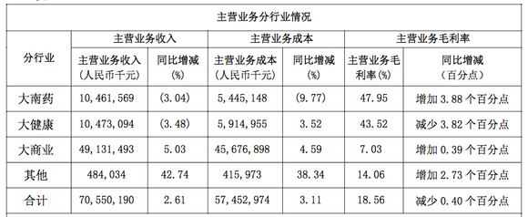 目前白云山拥有4大业务板块,分别是中西成药、化学原料药、天然药物、生物医药、化学原料药中间体的研发、制造与销售;西药、中药和医疗器械的批发、零售和进出口业务;大健康产品的研究开发、生产与销售;医疗、健康管理、养生养老等健康产业投资。