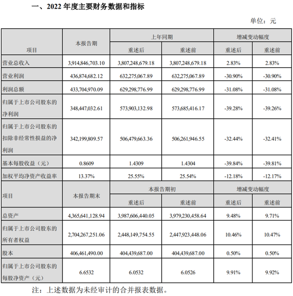 3月18日,姚记科技发布2022年业绩快报,内容显示,报告期内,姚记科技实现营收39.15亿元,同比微增2.83%;归母净利润3.48亿元,较上年同期减少39.28%。报告期末,公司资产总额43.66亿元,归属于上市公司股东的所有者权益合计27.04亿元,归属于上市公司股东的每股净资产6.6532元。