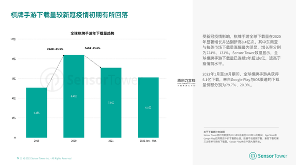 根据Sensor Tower《2022年棋牌桌游市场洞察》显示,预计2023年,棋牌休闲类手游下载量将延续以往的增长态势。