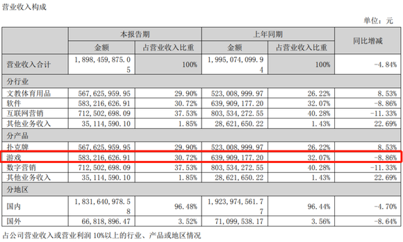 游戏业务也在营收与利润占比上均超过了50%,成为公司第一大业务。