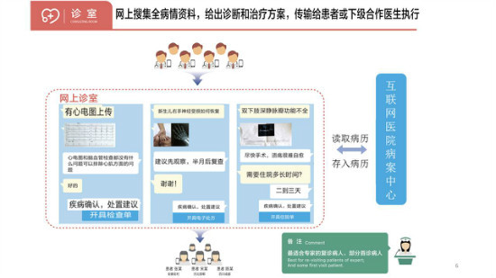 检查:王航称这种做法很像滴滴打车的派单系统——医生在线开出一张检查单,通过智慧互联网医院的分单中心将检查任务分配到离患者最近的医生那儿,医生需要将电子处方转成线下处方,患者可以直接在当地的医院做检查,随后将检查结果上传至网络。